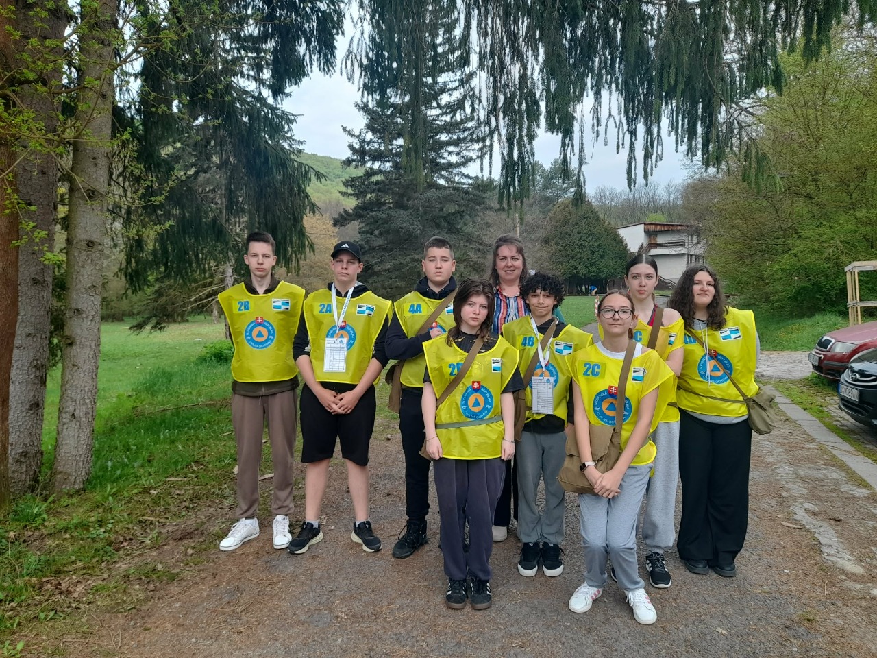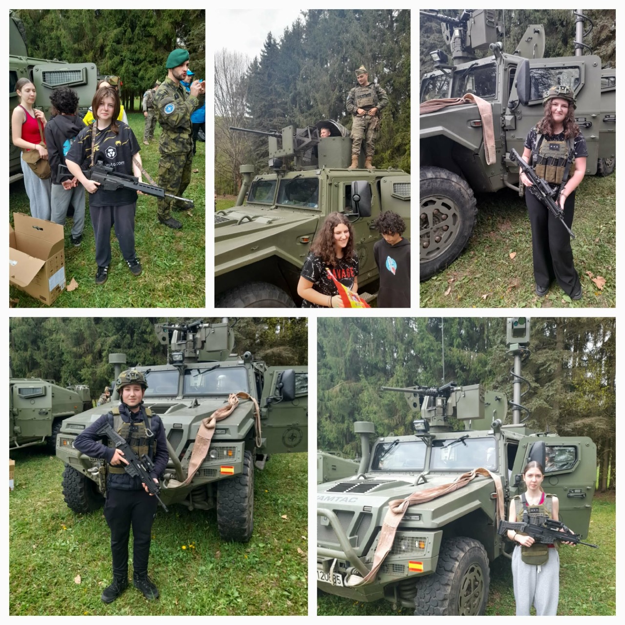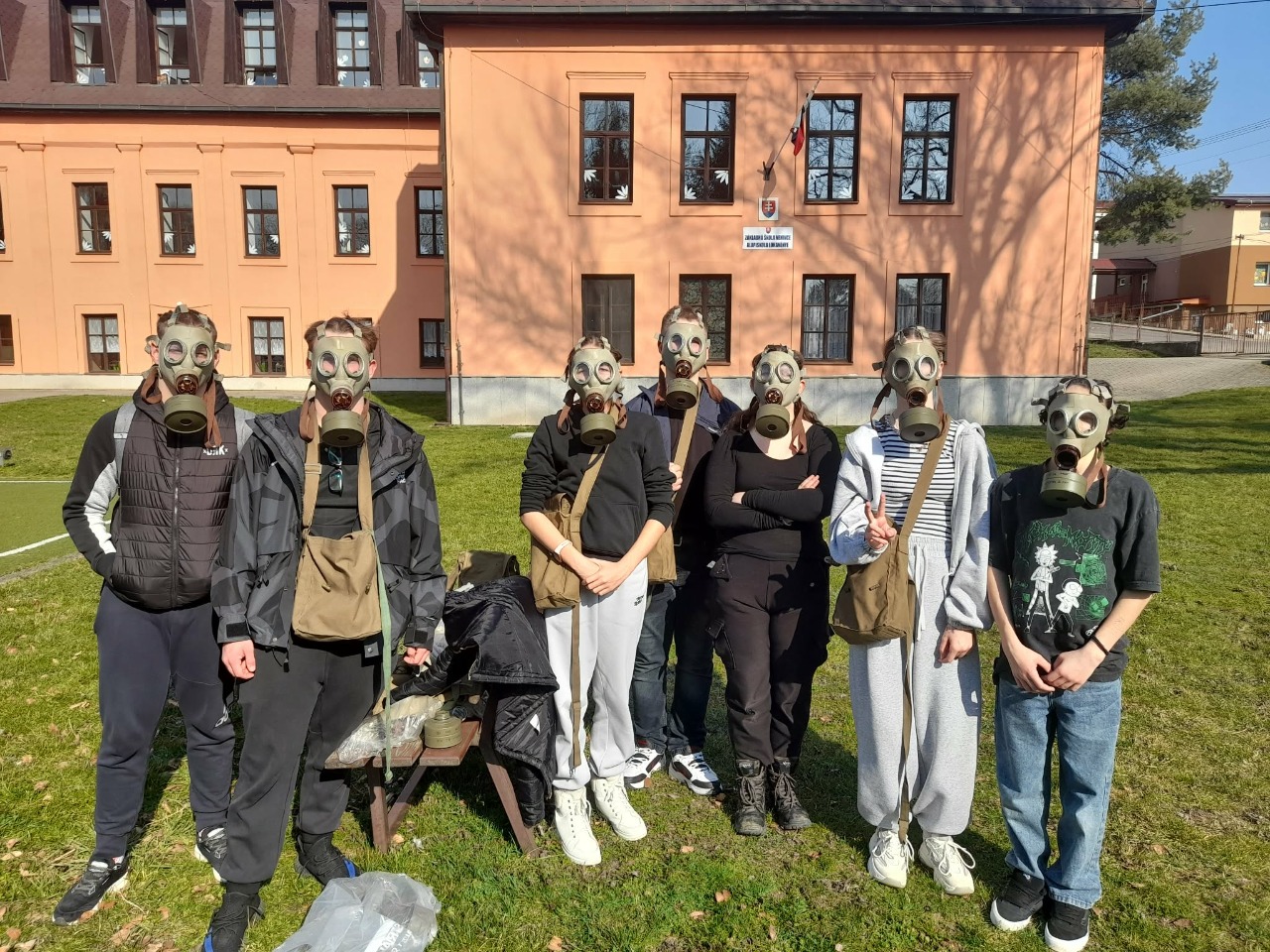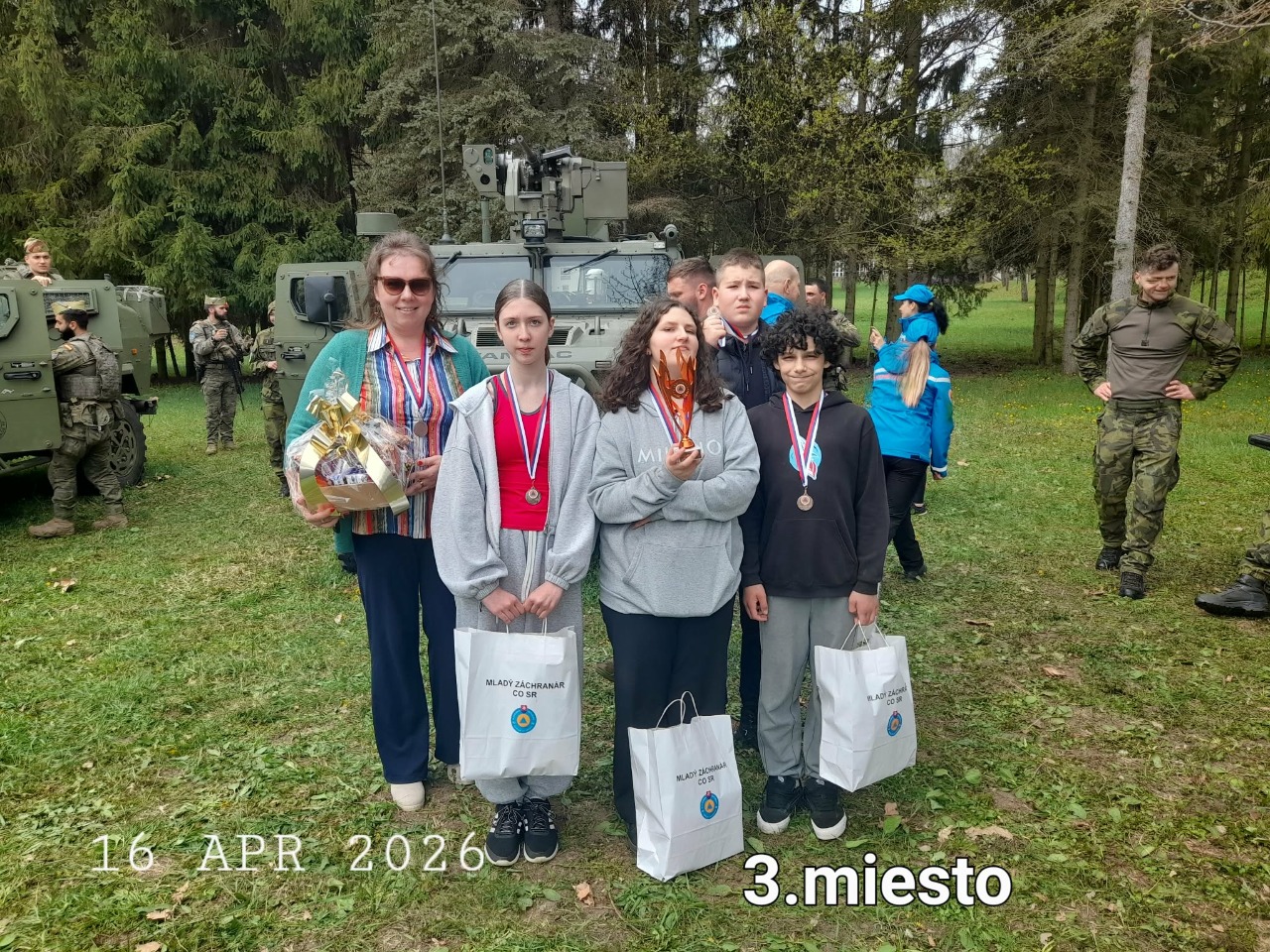disciplínach ( zdravotná príprava – pripravovala Mgr. Kuhajdová, streľba zo vzduchovky, topografia, civilná ochrana – varovné signály, ochranná maska, evakuačná batožina, prostriedky individuálnej ochrany, hasenie malých požiarov, testy – pripravovala Mgr. Vozárová). Súťaž nie je ale iba o samotnom súťažení, je to deň plný zážitkov – napr. tento rok si organizátori pripravili ukážky vojenskej techniky z ČR a Španielska, rovnako nechýbalo výborné občerstvenie a skvelé ceny pre každého. Tento rok sme obsadili krásne 3. miesto: Alexandra Veselovská, Amira Lacková, Kevin Varga, Ján Krško a 5. miesto: Jessica Čériová, Nelly Nagyová, Ryan Očko, Oto Palágyi. Gratulujeme a pokračujme budúci školský rok.