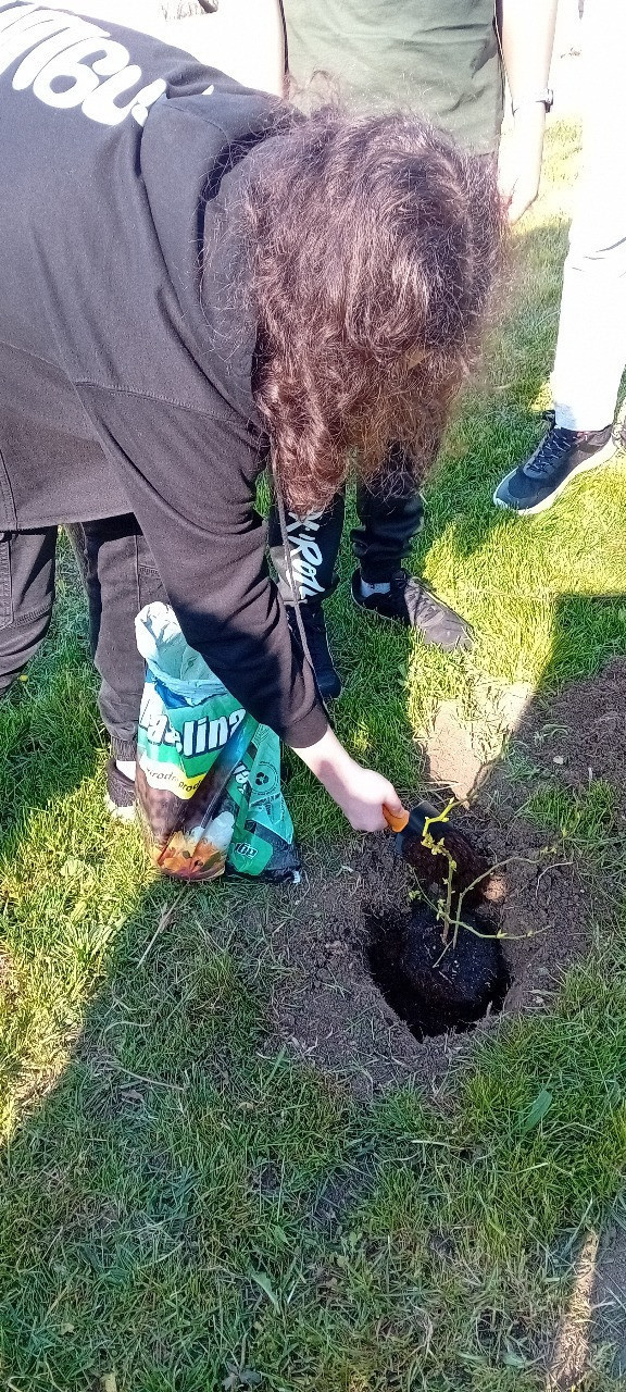 Začali sme tretiu sezónu rozširovania školskej ovocnej záhrady a tentokrát sme do nej vysadili kríky chutných čučoriedok a sadenice jahôd. Síce chutné sladké plody z nich zbierať tento rok ešte nebudeme, tešíme sa na ochutnácku drobného ovocia zo školekj ovocnej záhrady v ďalších rokoch. Tento odkaz nám tu zanechávajú aj žiaci 9.A triedy, ktorí pomáhali prácami pri sadení.